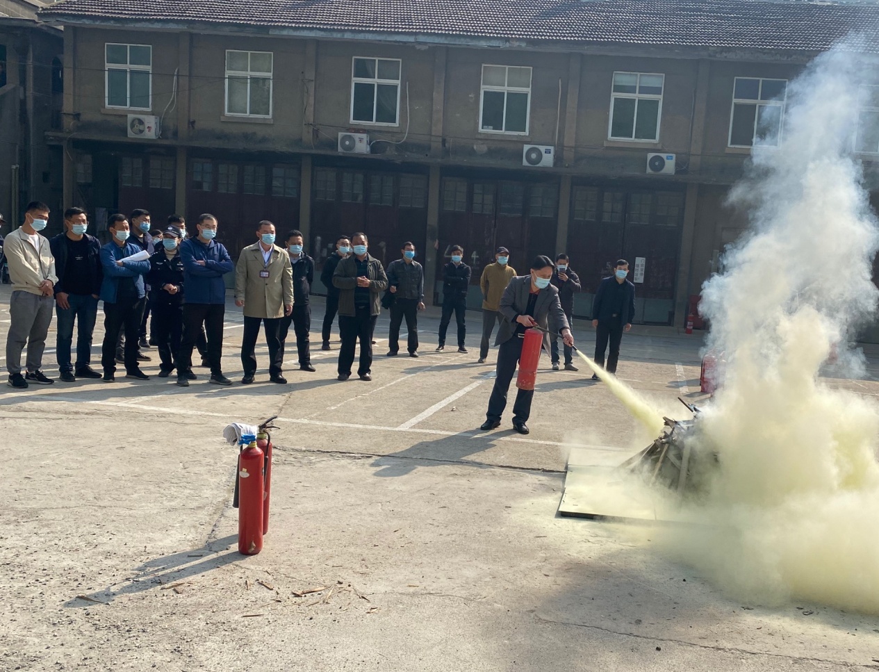 首先,安全培訓(xùn)人員講解了有關(guān)火災(zāi)現(xiàn)場的應(yīng)急處置方案,滅火器的使用方法以及相關(guān)的注意事項,并親自演練了滅火器的使用方法。