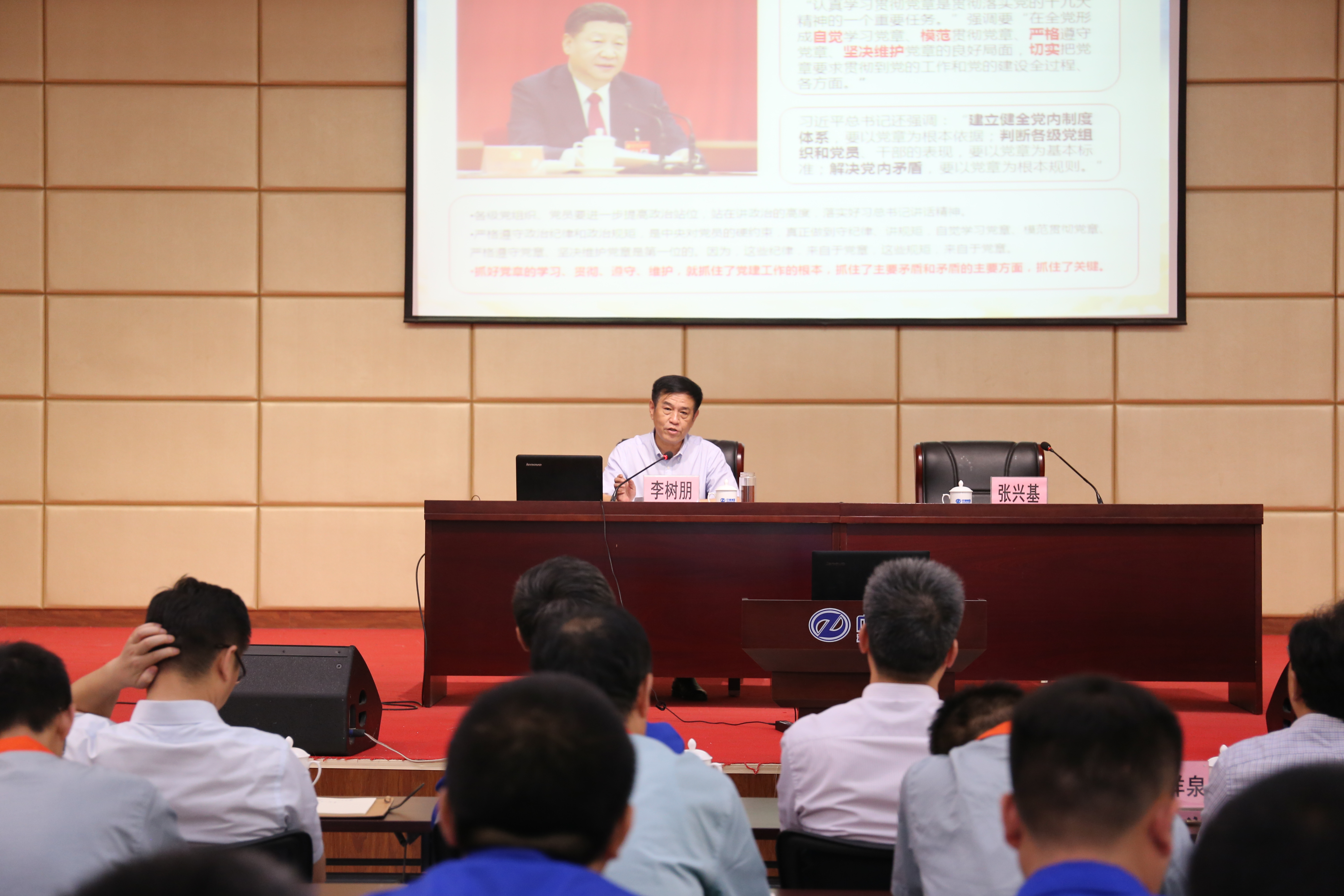 李樹朋緊密聯系十九大精神和習近平新時代中國特色社會主義思想,緊密結合企業(yè)改革發(fā)展、黨組織和黨員隊伍建設實際,從為什么學習黨章、學習黨章需要把握好的基本內容、如何抓好學習貫徹黨章工作落實等三個方面,與大家分享了自己的學習感悟和思考認識,既是一堂學習黨章的專題輔導課,也是一堂深刻的黨性教育課。