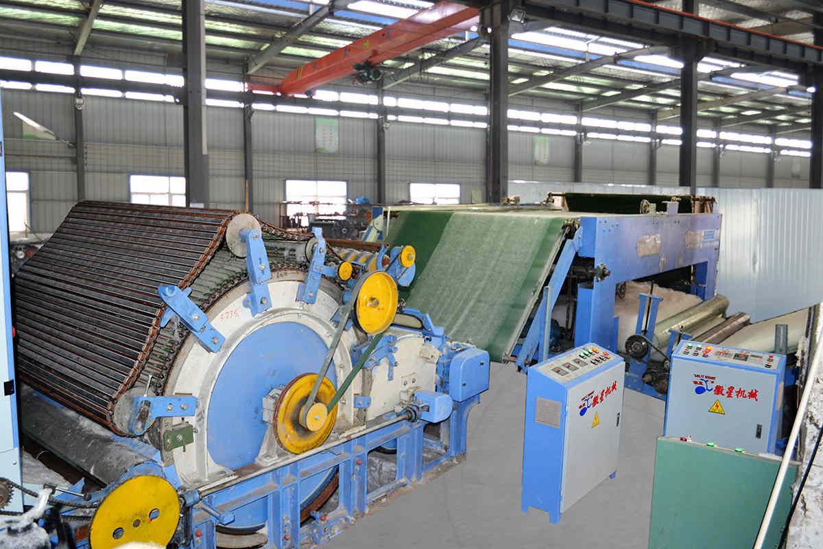 一.喂棉、梳棉部分:本大型棉被生產線可與1-8臺蓋板梳棉機配套,喂棉部分全部采用光控喂棉機與氣壓棉箱組合給棉。